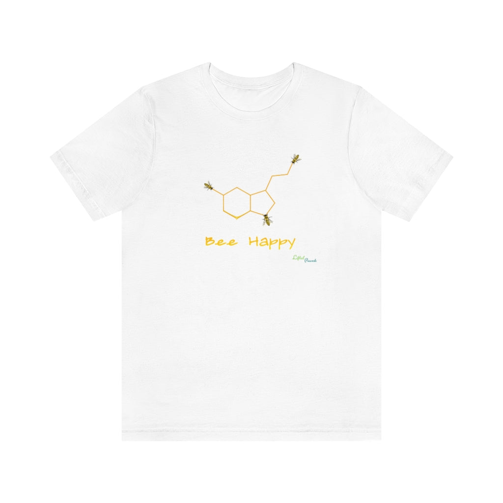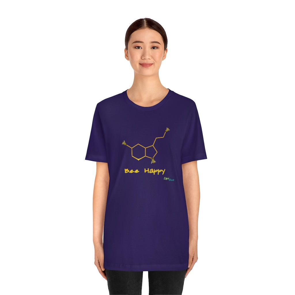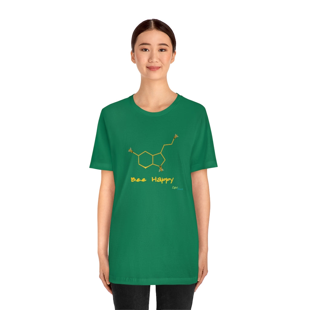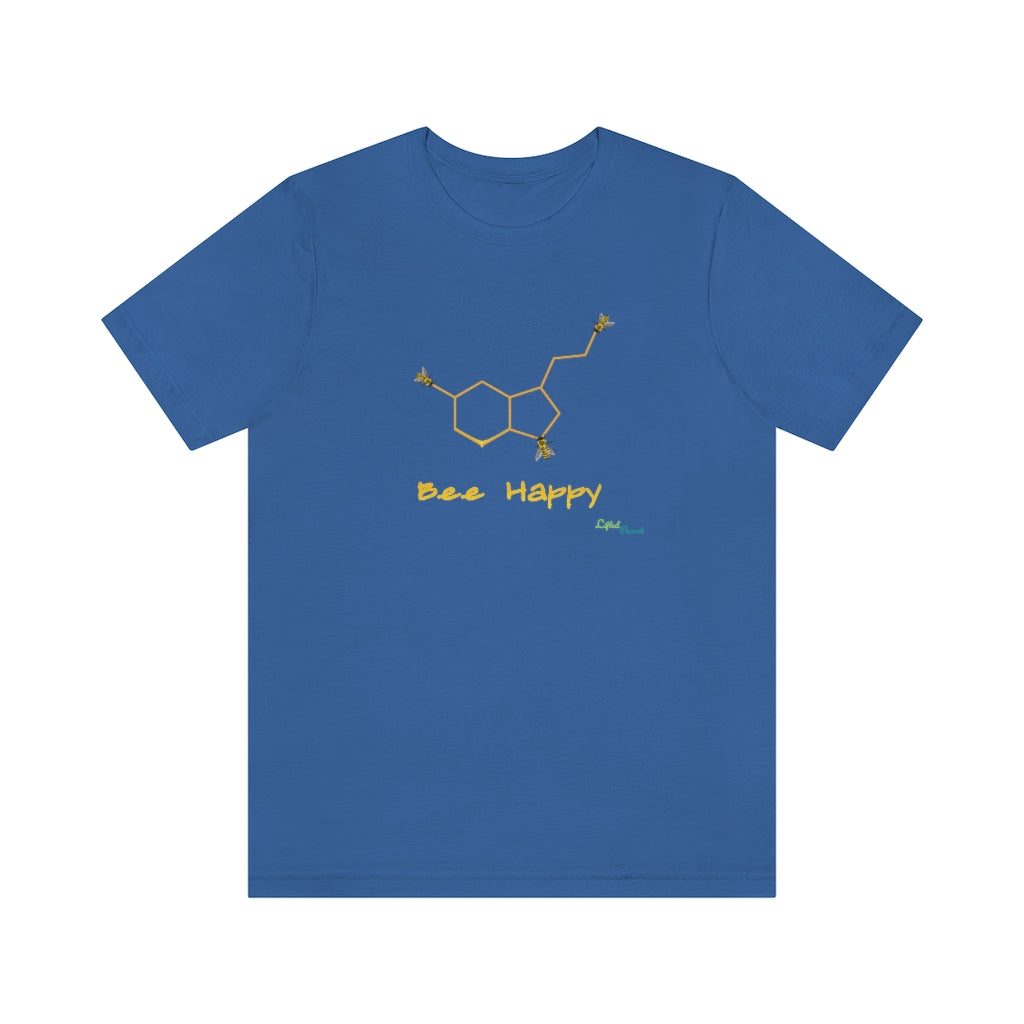 This shirt is designed on a 100% cotton semi-slim fit shirt and printed with eco-friendly inks. The concept combines the chemical structure of serotonin and bee's to make a pun that will bee sure increase your happiness.
