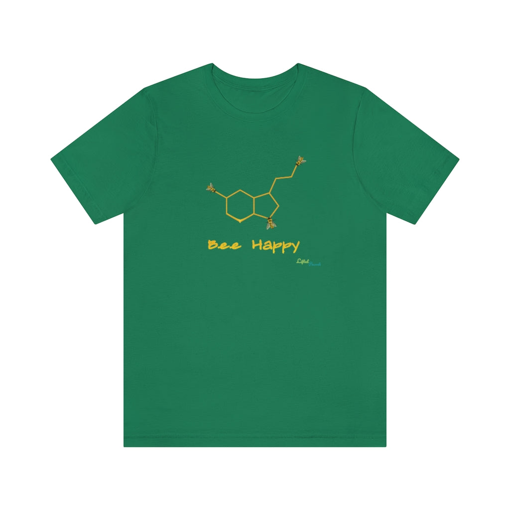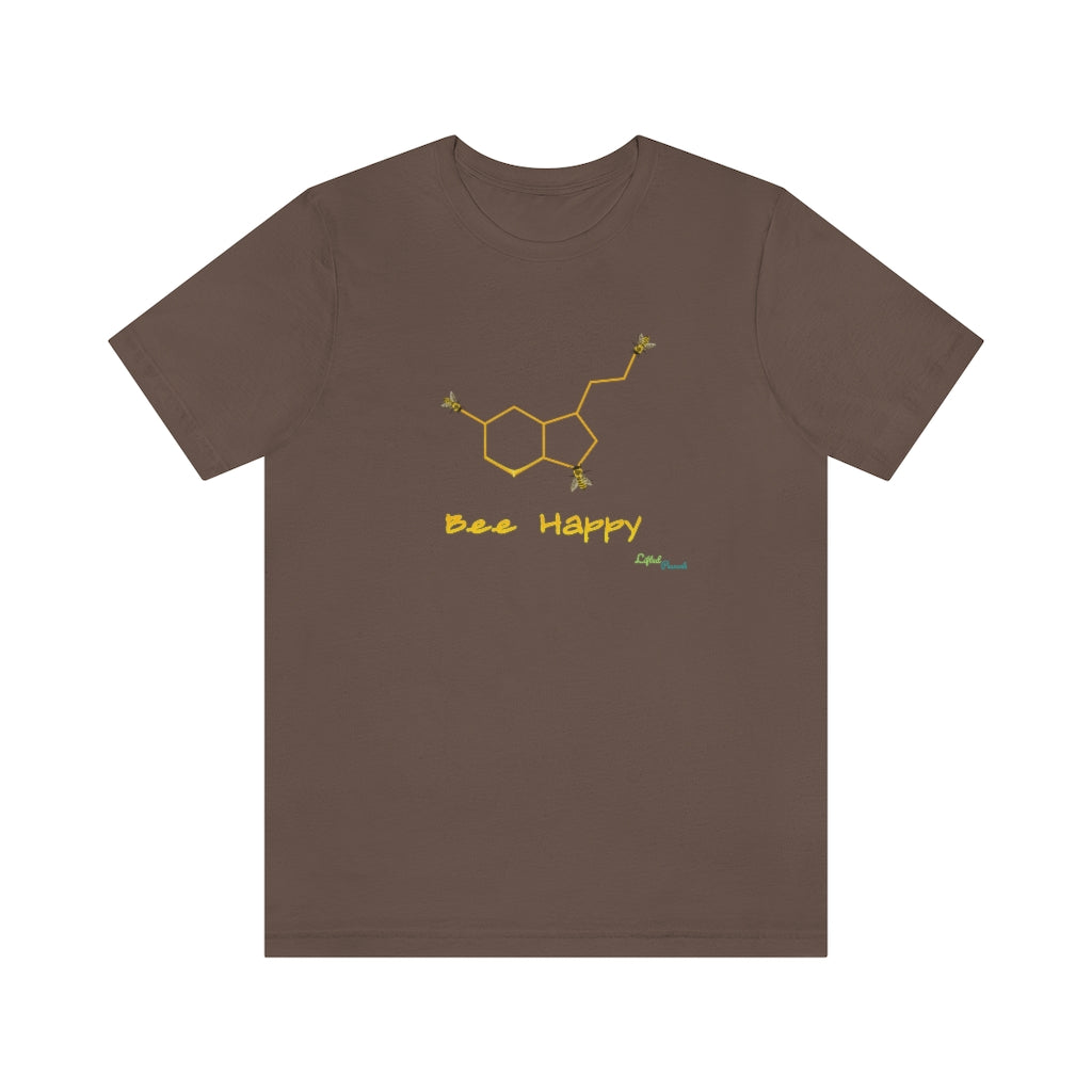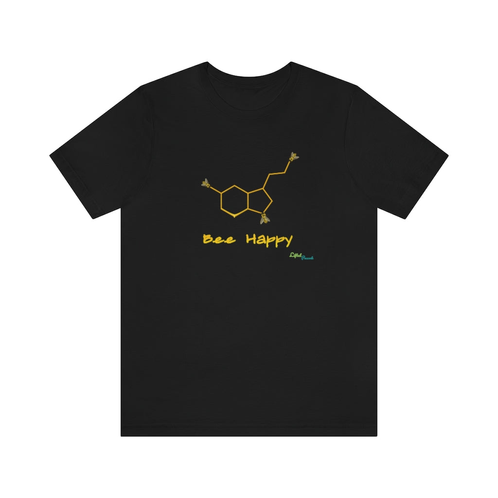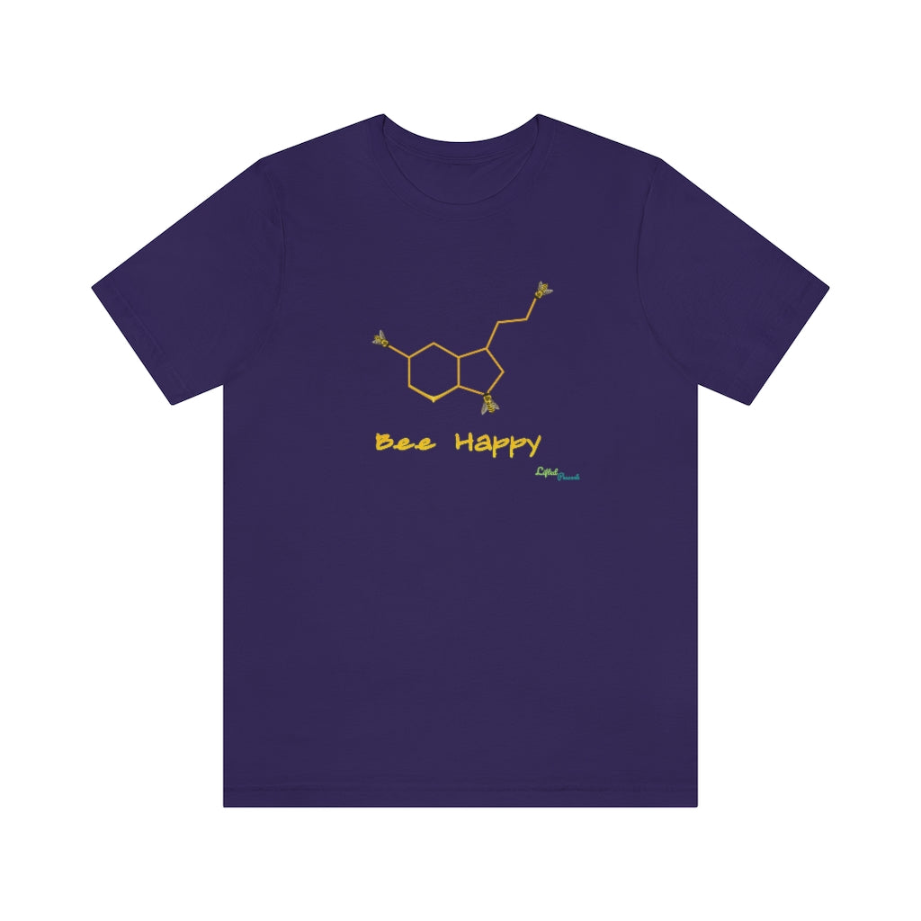 This shirt is designed on a 100% cotton semi-slim fit shirt and printed with eco-friendly inks. The concept combines the chemical structure of serotonin and bee's to make a pun that will bee sure increase your happiness.